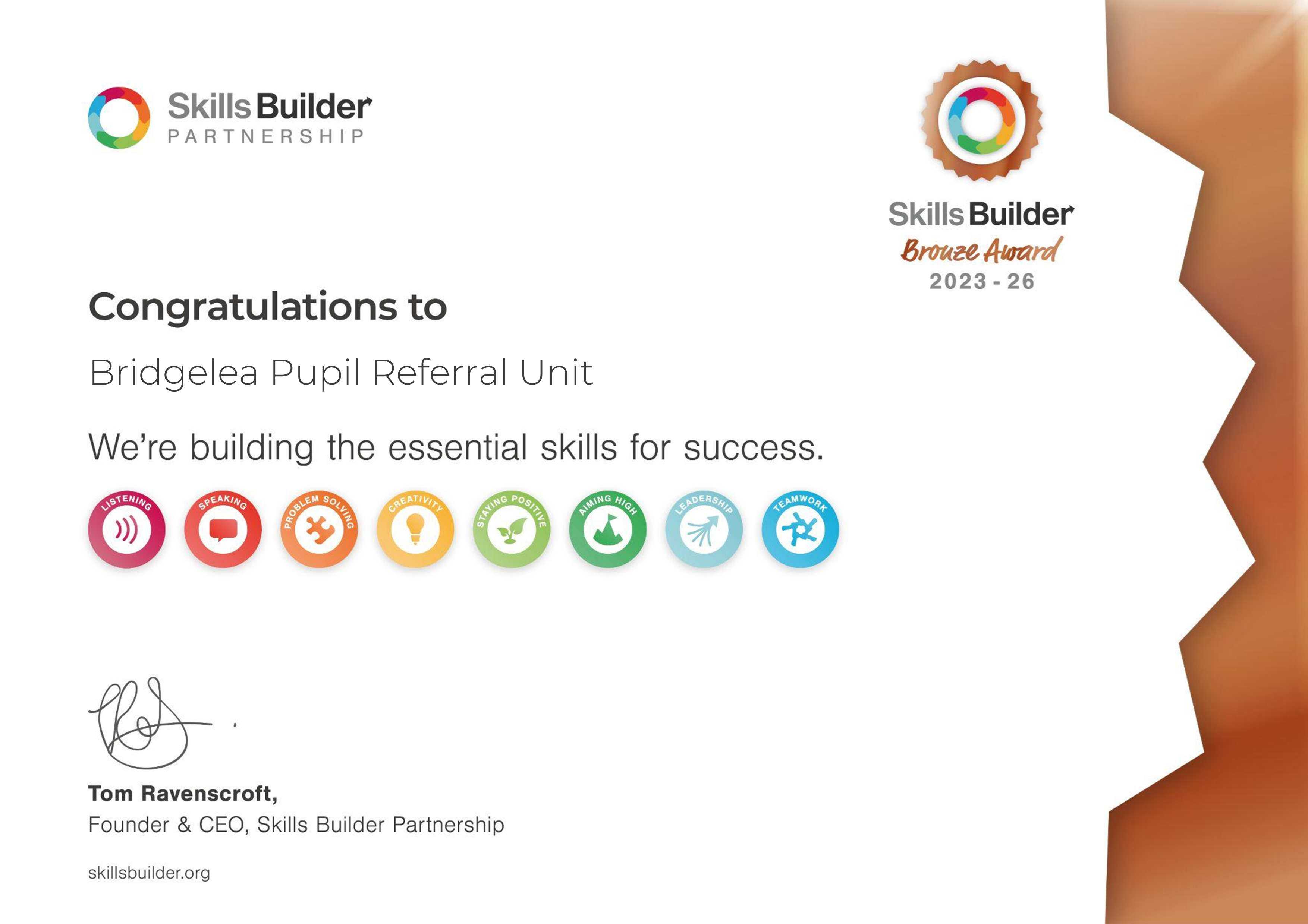 Bridgelea works with The Skills Builder Partnership to ensure every learner has opportunities to build essential life skills to support them now and in the future.